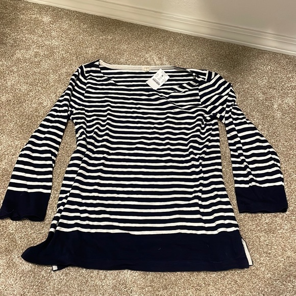 J Crew Tops J Crew Boat Neck Long Sleeve Split Hem Navy White Stripe Shirt Size Medium Poshmark
